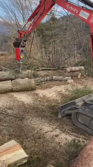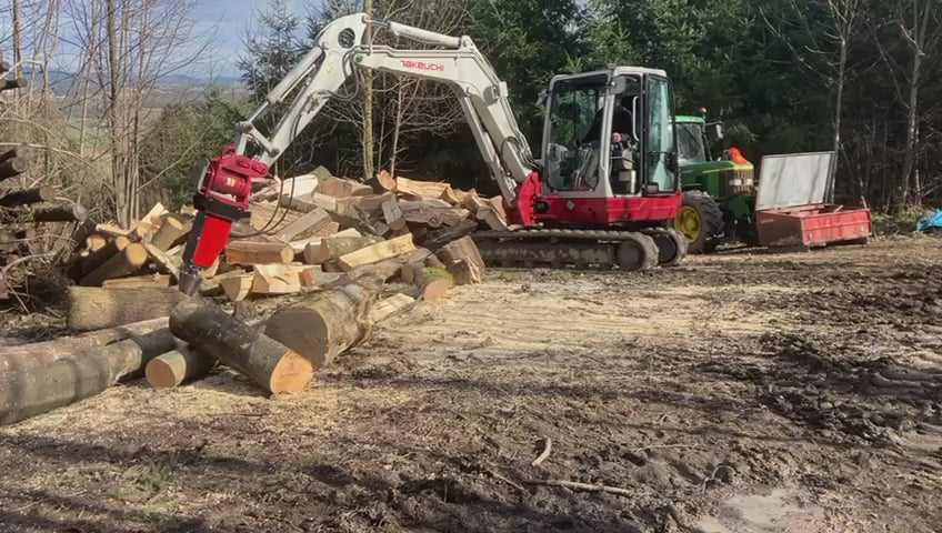 Anschluss an den Bagger (falls Sie ihn bei uns gekauft haben). Normalerweise müssen nur noch die Hydraulikschläuche angeschlossen werden, und der Holzspalter ist einsatzbereit.